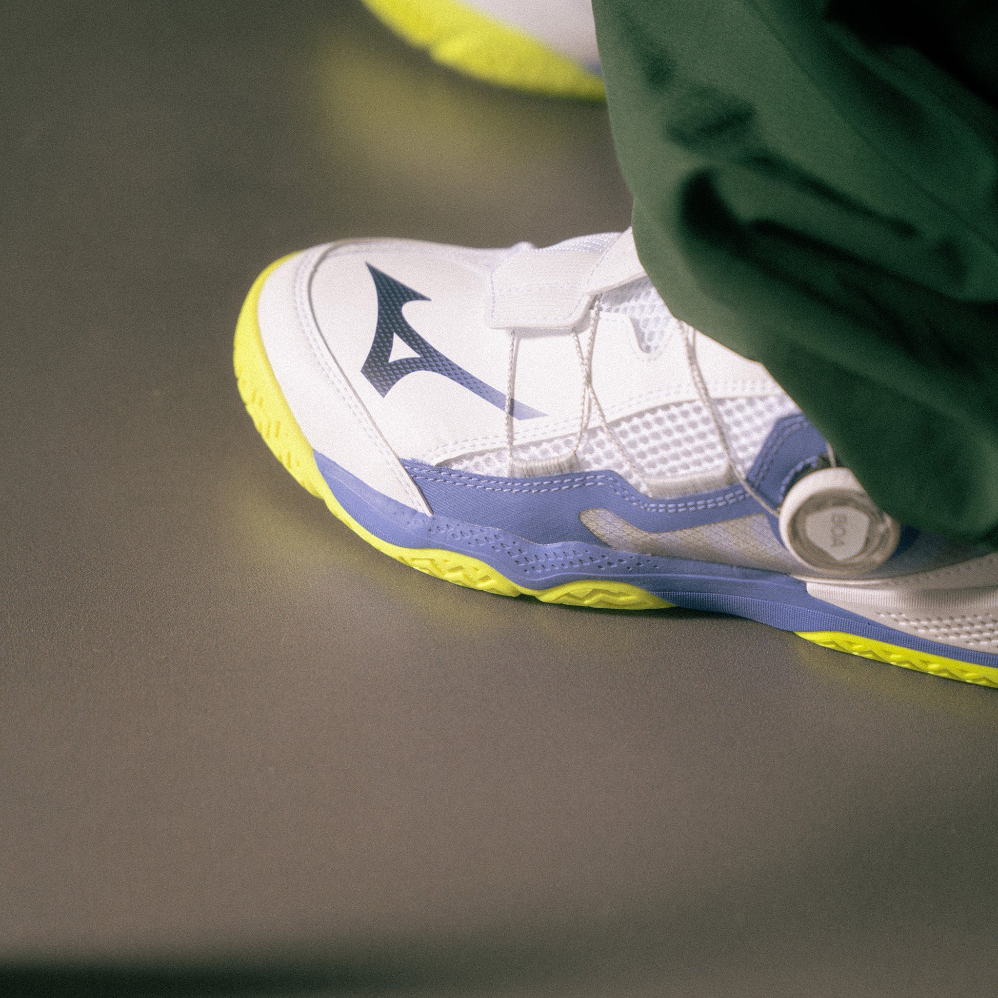 Experience the ultimate combination of Mizuno‘s superior technology and a precision fit enhanced with a BOA dial. Only Mizuno offers table tennis shoes with BOA dials, and this shoe with a wrap-style BOA dial design offers the best fit among all our tennis shoes. The straps are attached from the inner shell for a more fitted feel and support for side-to-side footwork. Featuring Mizuno Enerzy NXT for cushioning, an improved heel structure for stability, and flex grooves for enhanced grip, this shoe is built for competitive players who value performance and cushioned support.