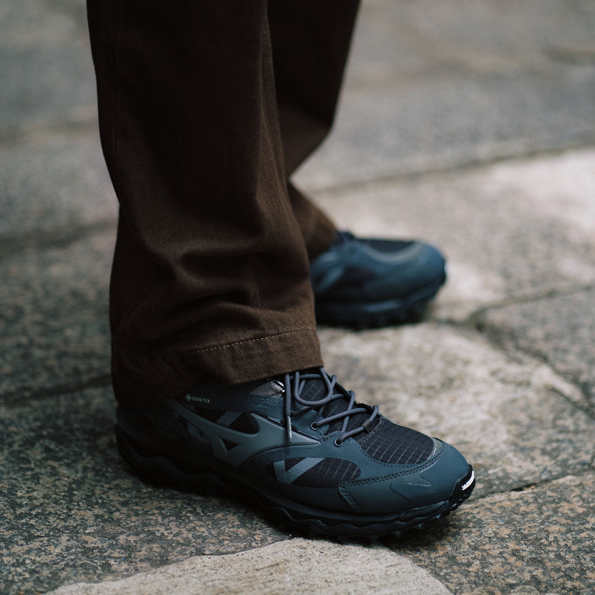WAVE MUJIN TL GTX is inspired by the unreleased running silhouette in the 2000s. The sneaker comes with a GORE-TEX upper and a Michelin rubber outsole to provide outdoor utility.