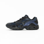 The ND. X MIZUNO exclusive collaboration WAVE RIDER 10 celebrates the 20th anniversary of END., a renowned British streetwear store. Inspired by the northeast coastline of the UK, this collaboration brings the "North Sea" edition of the WAVE RIDER 10. This special edition sneaker features design cues drawn from the wild and rugged North Sea landscape, capturing its deep blue hues with a layered mesh upper and shiny overlays that mimic the shimmering sunlight on the water. The sneaker combines heritage design with a modern and progressive attitude, complete with co-branding elements from both END. and Mizuno.